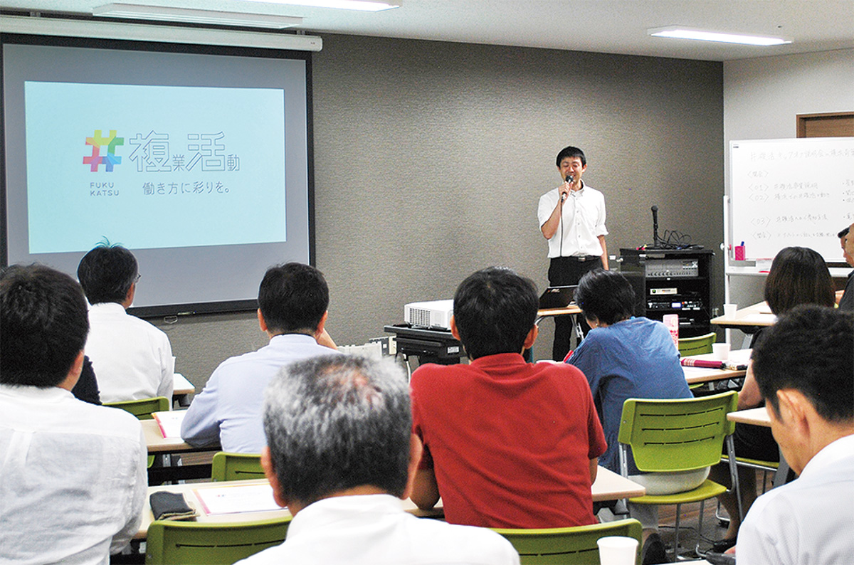 副業や兼業したい人と地域企業を結び付ける複業活動「複活」の説明会が7月30日、たまプラーザ地域ケアプラザで行われた=写真。関東経済産業局の委託を受けた(株)パソナが主催し、美しが丘の起業支援センター「まちなかbizあおば」が協力した。
