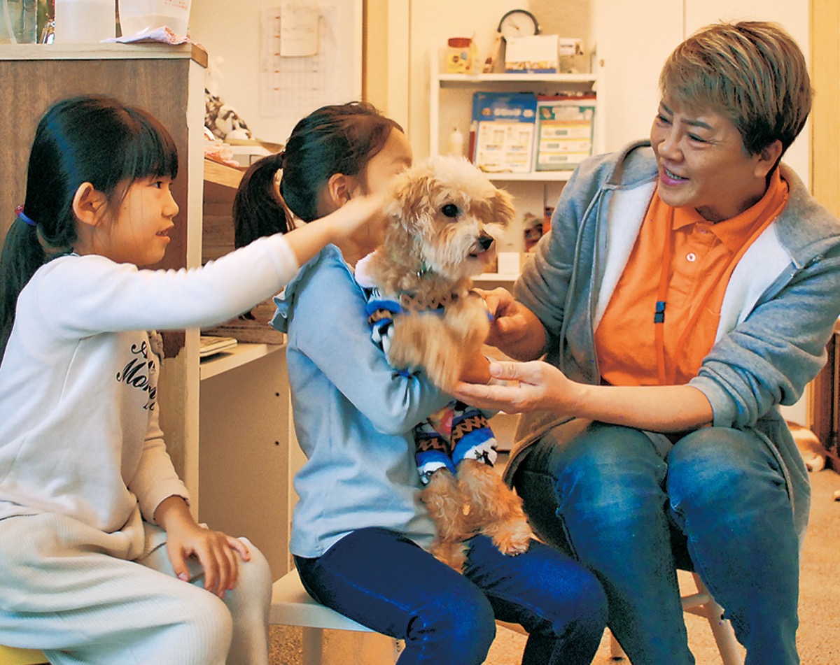 同所では、引き取り手がいなかったり、虐待を受けた犬猫を保護し、カフェで飼育しながら譲渡会も行っている。当日は、飯倉代表が児童に犬や猫が保護された経緯を説明。人間の身勝手で捨てられた話に「かわいそう」「ちゃんと飼わなきゃダメ」といった声があがった。