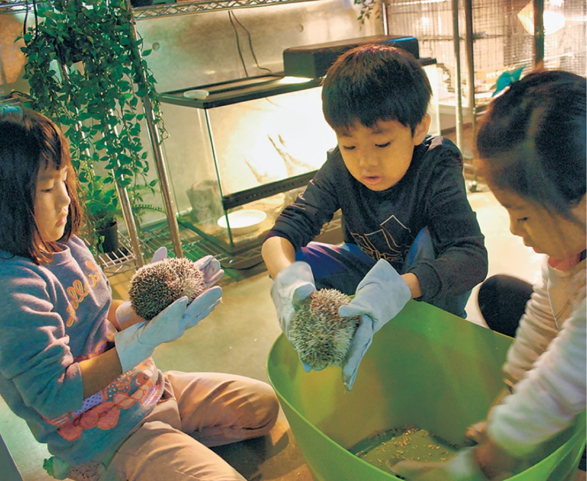 そして、触れ合い方を学んだ児童たちはグループに分かれてカフェブースに移動。まず手の匂いを嗅がせて安心させてから犬や猫に触れ、「かわいいね」「こっち来てくれた」と笑顔。また、同所ではトカゲなどの爬虫類やハリネズミも飼育していて、「本でしか見たことのないイグアナに初めて触った」と男子児童が興奮気味に話していた。