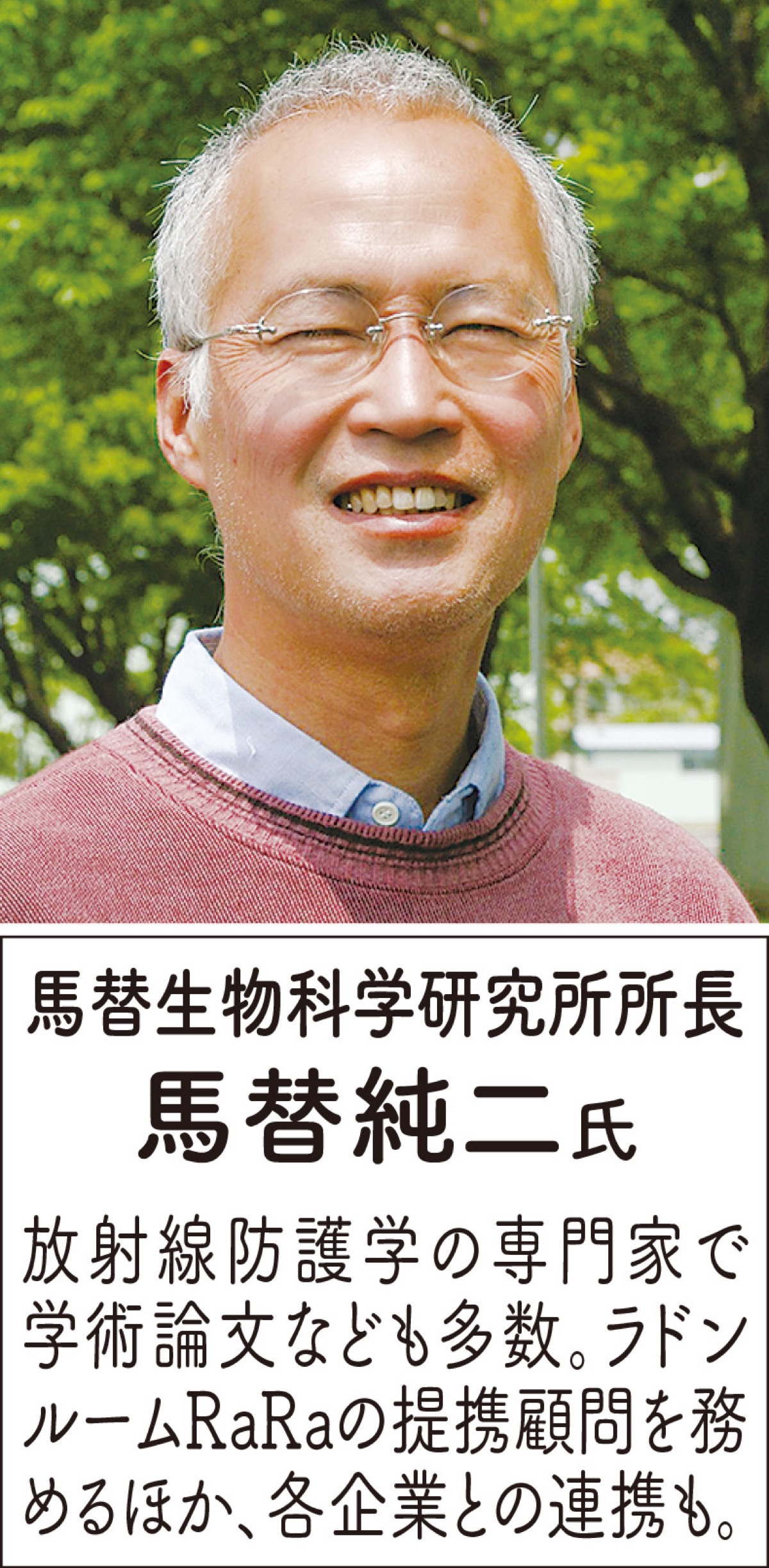 サウナのような個室で微量の放射線刺激を受けて健康になれるという「ラドン温浴」。たまプラーザ駅そばで開設以来多くの来客があるというラドンルームRaRaの提携顧問・専門家である馬替純二氏に聞いた。