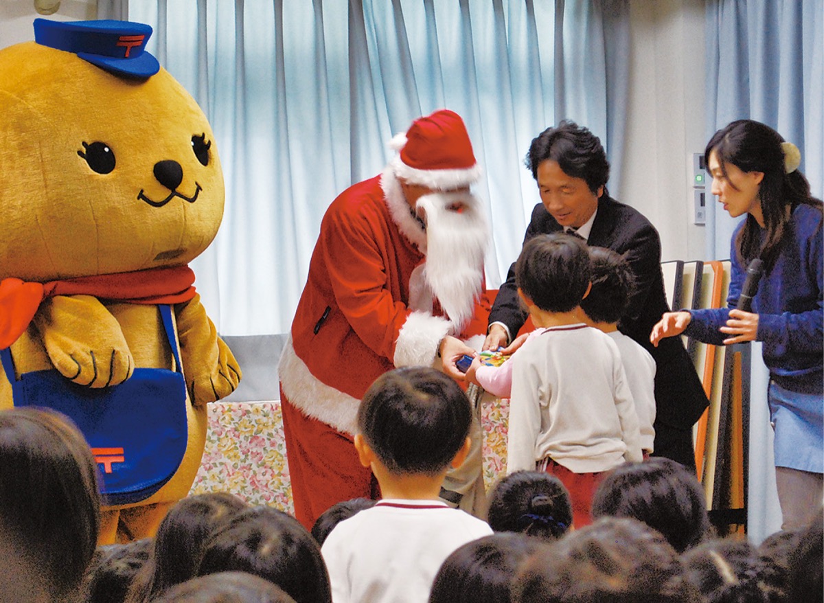 青葉郵便局(宮崎登局長)は12月6日にしらとり台保育園(佐野ルミ子園長)を訪れ、園児たちに一足早いクリスマスプレゼントを届けた。