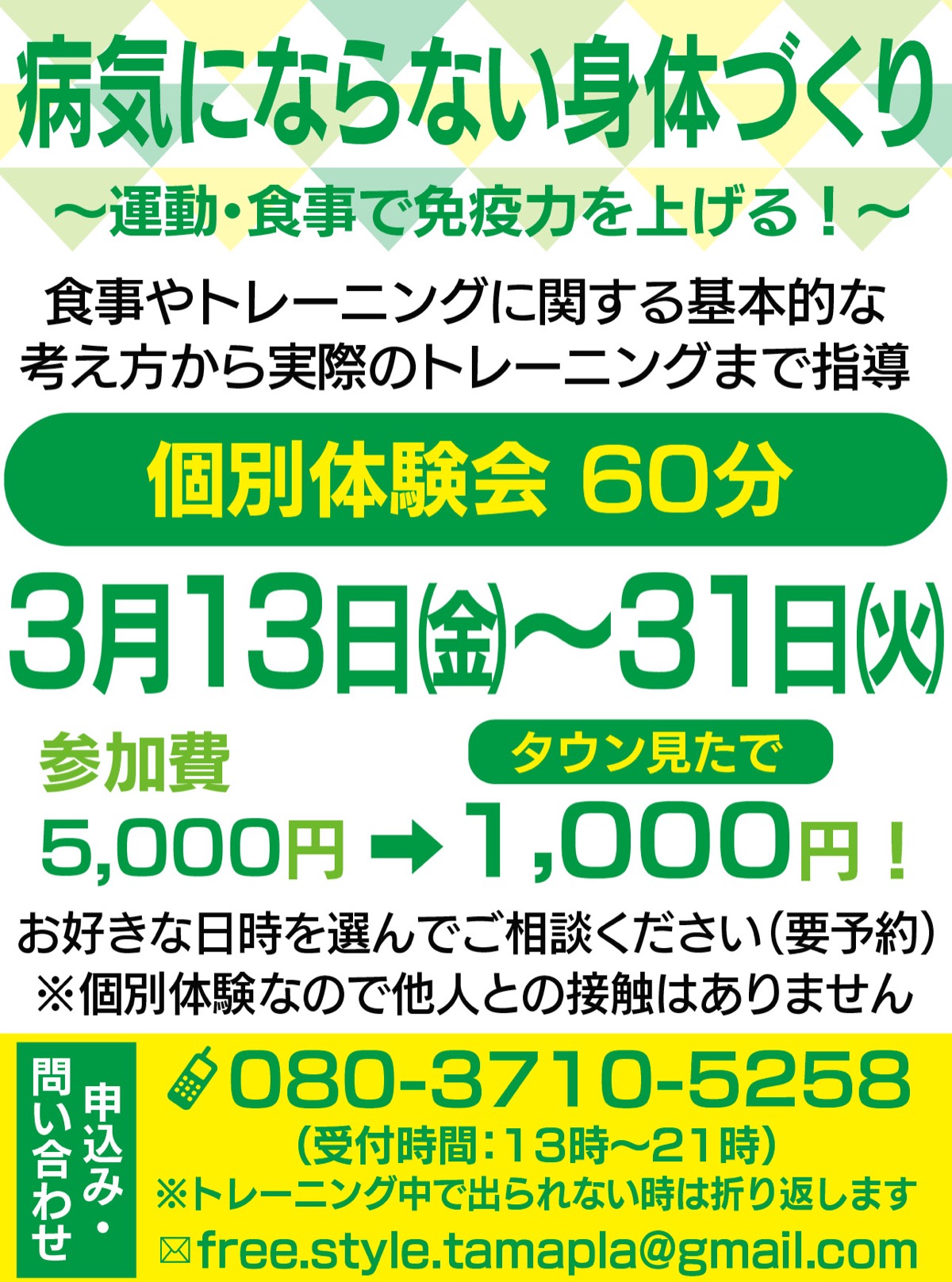 医師監修のメディカルフィットネスジム「Free STYLE」が運動で免疫力を上げ、病気にならない身体をめざす個別体験会を開催する。パーソナルジムなので他人と一緒になる心配もなく、ウイルス対策も万全だ。