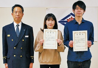渕上正基署長は「3人の勇気ある行動に敬意を表したい。市民の皆さんにもぜひ身近な場所のAEDを知っておいてもらいたい」と話した。