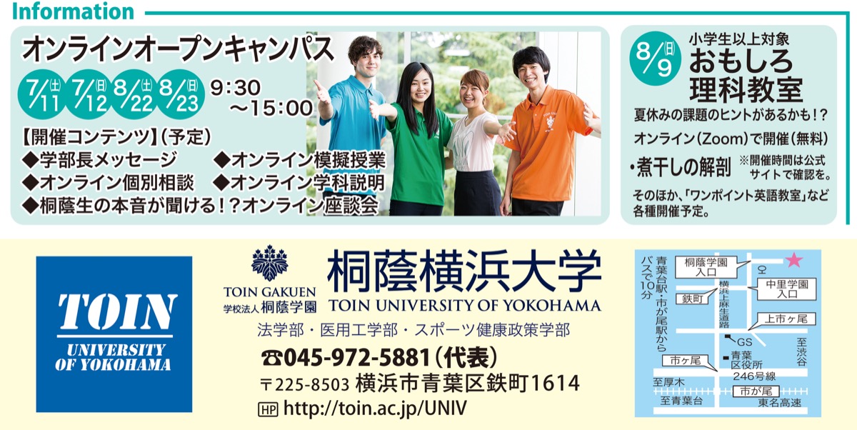 桐蔭横浜大学は「個の充実」「実務家養成」「開かれた大学」「国際交流」を柱に、3学部6学科で少人数・実践型教育を続けている。