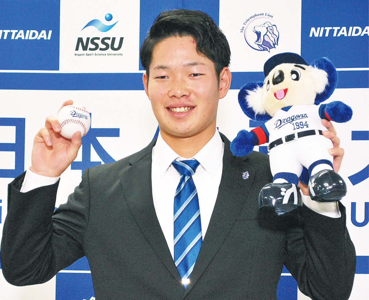 同大の健志台キャンパスには4年間一緒に練習してきた同級生部員や関係者が集い、2巡目で中日からの指名が読み上げられると、会場は大きな拍手で沸いた。