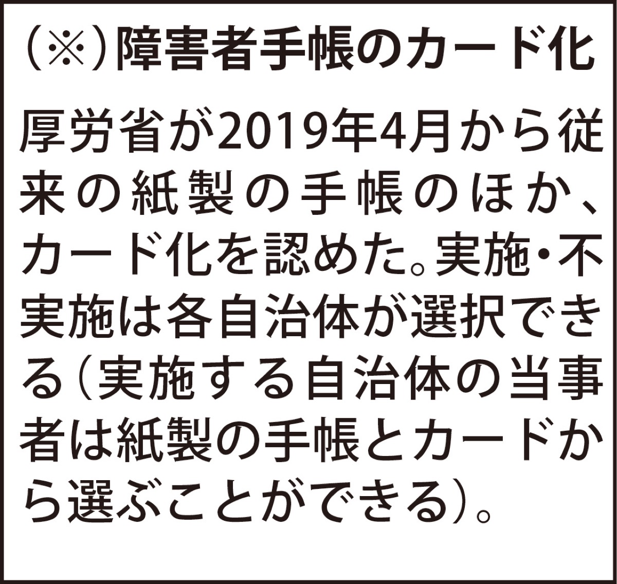 障害者手帳カード化導入