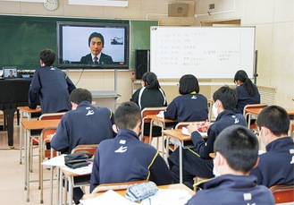 毎年、地元店舗や企業などに訪問して行われている同学習。しかし、今年はコロナ禍で対応が難しく、中高校生のキャリア教育を行っているNPO法人「アスリード」の協力を得て、初めてオンラインで実施された。