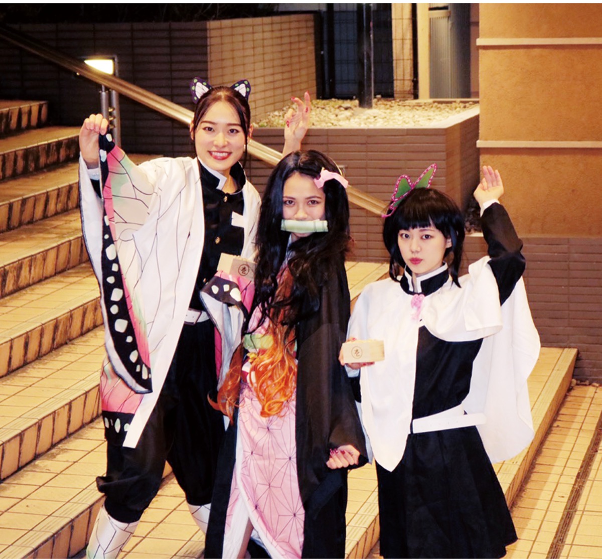 ベストオブミス神奈川は「ミス・ユニバース・ジャパン」「ミス・グランド・ジャパン」「ミス・ユニバーシティ」の日本大会に向け、神奈川代表を選考している団体。当日はミスユニバースジャパンプレリミナリー2020神奈川代表の釣谷真白さん、ミスグランドジャパン2020神奈川代表の肥塚結莉さん、ミスユニバーシティ2020神奈川代表の難波遥さんらが参加。それぞれ栗花落カナヲ=写真右、胡蝶しのぶ=同左、竈門禰豆子=同中央=に扮し、悪疫退散を願い、全集中で悪鬼滅殺を願った。