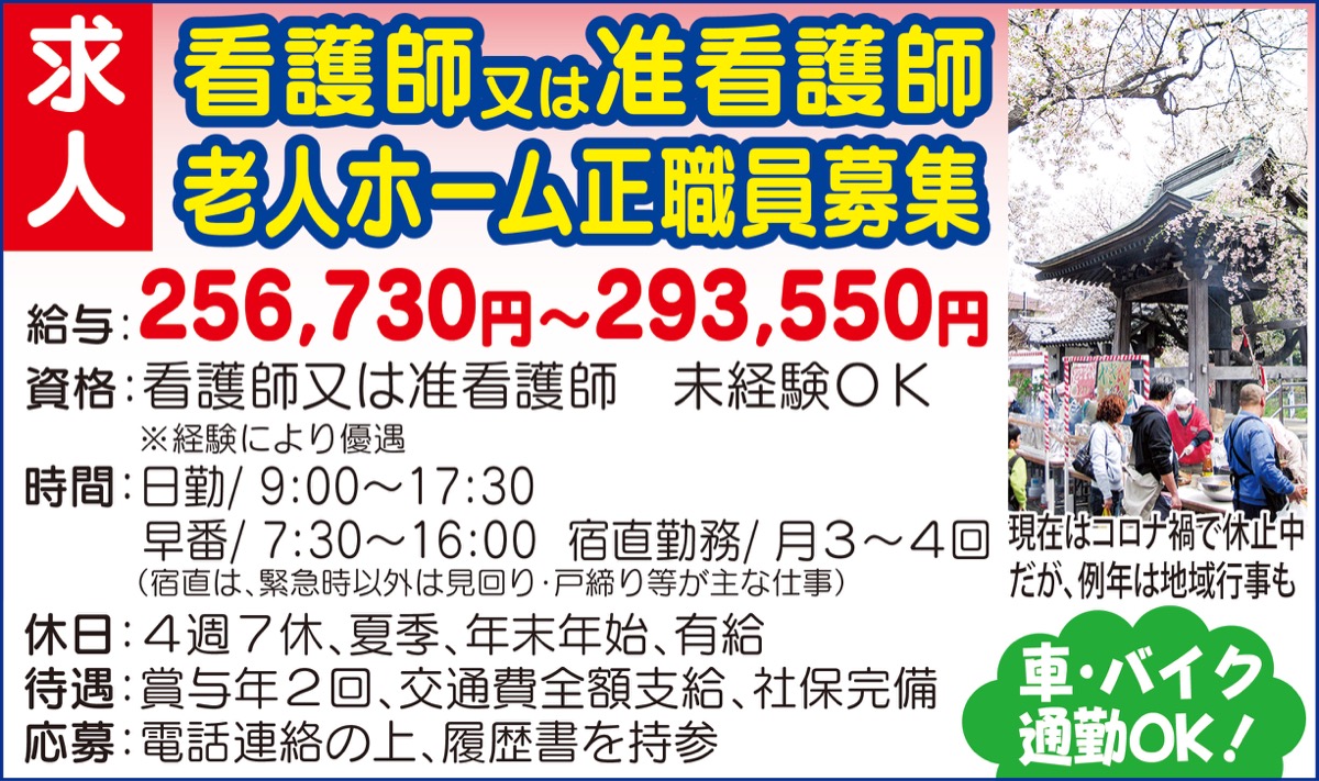 自立したお年寄りが暮らす老人ホーム「ルンビニ合掌苑」で入居者の健康管理を行う看護師又は准看護師を募集。臨床経験がなくても応募可能。