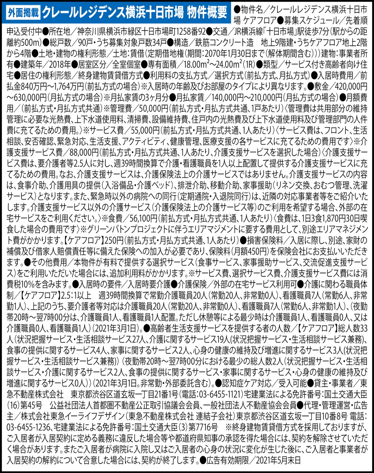 東急不動産HDグループの介護住宅「クレールレジデンス横浜十日市場・ケアフロア」