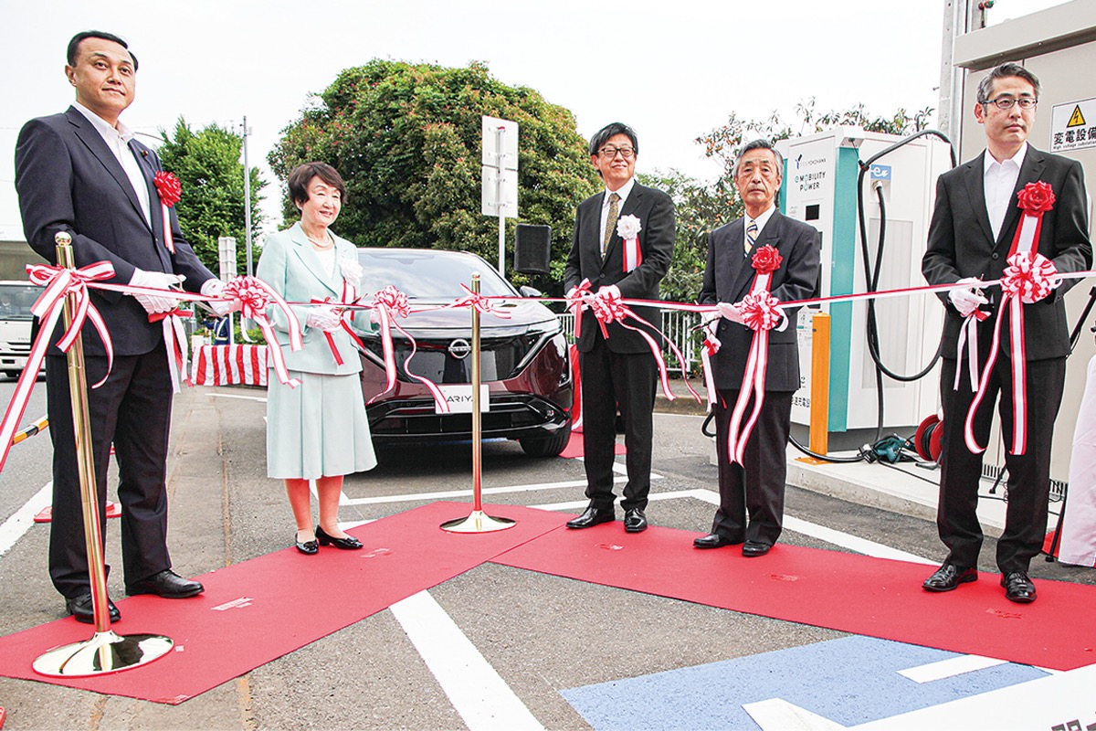 8日には林文子市長や同社の四ツ柳尚子代表取締役社長らが参加し、みどりアートパークと現地で実証実験開始式が行われた。林市長は「今回の実証実験で充電インフラの整備を大きく前進させ、EVが日常のものになるきっかけになれば」とあいさつ。四ツ柳社長は人口が多く充電器のニーズが高い大都市部は場所がなく設置できないジレンマがあると説明。「今まで事例がなかった公道上も設置候補地となることで利便性が高まり、EV普及が進むと考えている」と語った。