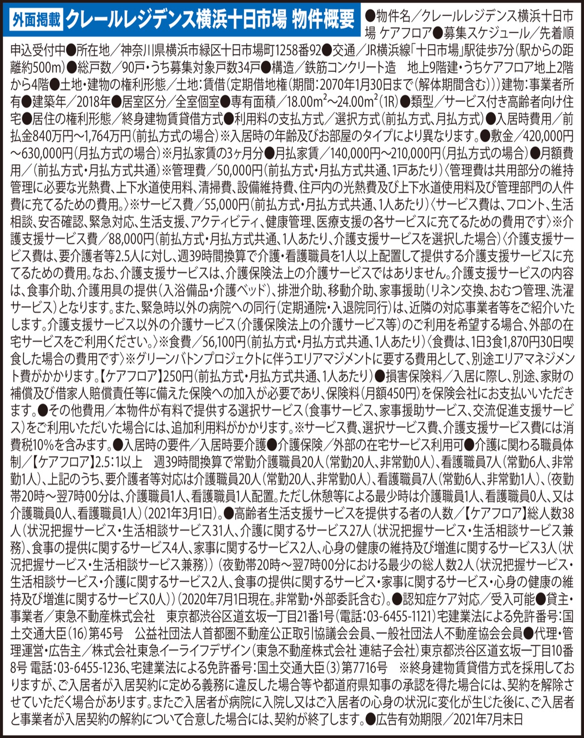 東急不動産HDグループの介護住宅「クレールレジデンス横浜十日市場・ケアフロア」