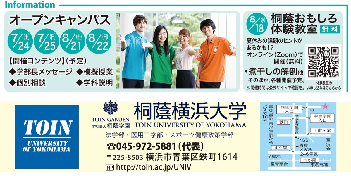 桐蔭横浜大学は「個の充実」「実務家養成」「開かれた大学」「国際交流」を柱に、3学部6学科で少人数・実践型教育を続けている。