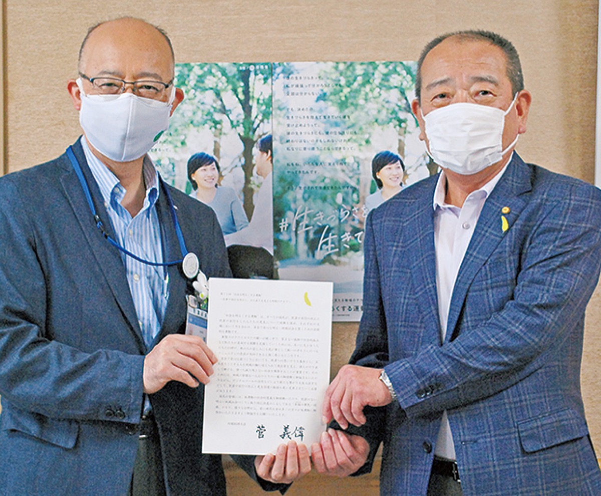 犯罪や非行の防止と罪を犯した人の更生について理解を深め、安全で安心な明るい地域社会を築くことを目的とする同運動。この日は青葉保護司会の野本建夫会長が区役所を訪れ、総理大臣からのメッセージを小澤明夫区長に手渡し、協力を求めた=写真。