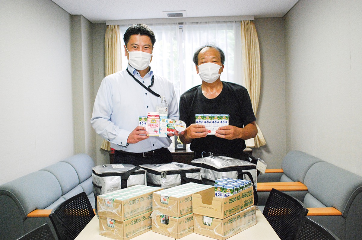 元石川町で小岩井牛乳横浜ミルクセンターを営む北嶋克悦さんが8月23日、青葉さわい病院に乳飲料やヨーグルトなど約200本を寄贈した。