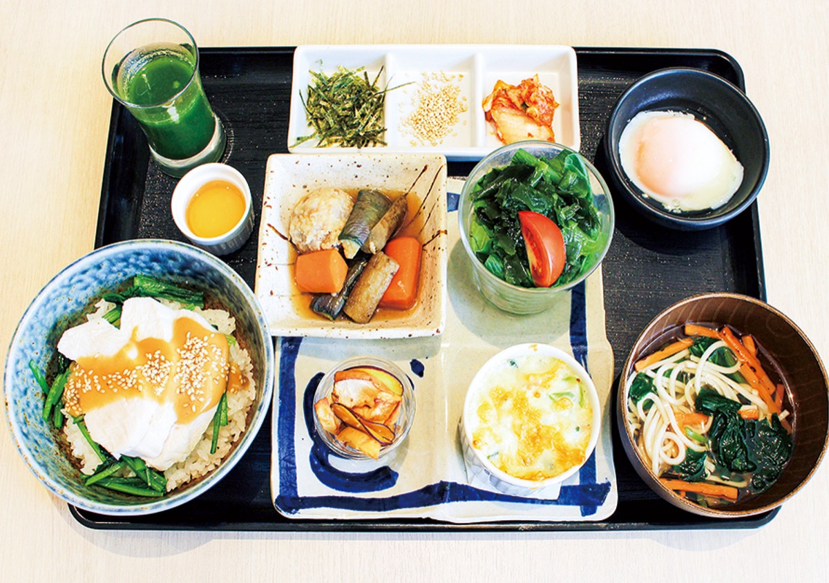 1日から15日まで登場するのは「日体大フィールズ横浜応援企画!アスリート丼」。鴨志田町の日本体育大学健志台キャンパスを拠点に活動している女子サッカークラブを応援しようと考えられたもので、学食で人気のメニューをアレンジ。ヘルシーな蒸し鶏に、同クラブの選手らが作った味噌胡麻ソースをかけたチキン丼だ。ご飯は奈良町の三澤総合農場で栽培した新米「はるみ」を使用。キヌヒカリとコシヒカリを交配させた湘南生まれの米で、甘味と粘りが強く、さっぱりとしたチキンと相性ぴったり。また、寺家町などで各種野菜を栽培しているはやし農園の小麦を使ったうどん入りスープのほか、地場産野菜を使用したおかずが並ぶ。