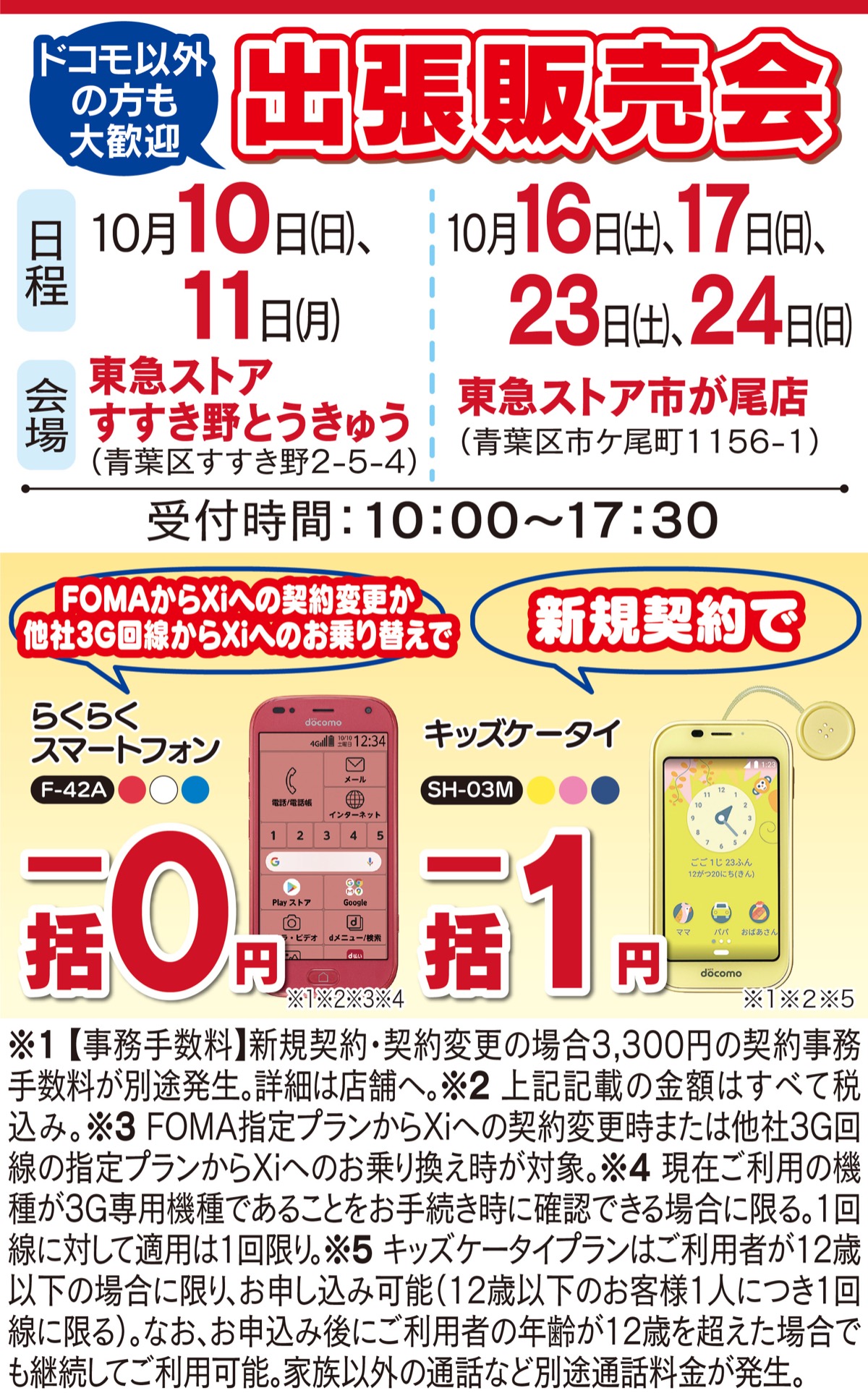 3G回線の終了に伴い2026年3月末にFOMAの折りたたみ携帯電話はサービスを終了する。今ある携帯が使えなくなる前にスマホデビューを考えては。ドコモショップ鷺沼店では今月、東急ストアすすき野と市が尾で出張販売会を開催。日程は上記参照。
