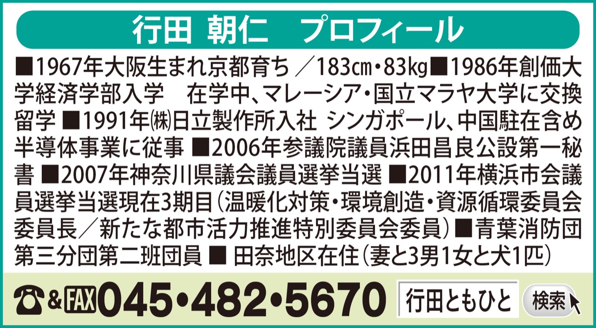 公明党 横浜市会議員 行田朝仁(ぎょうたともひと)