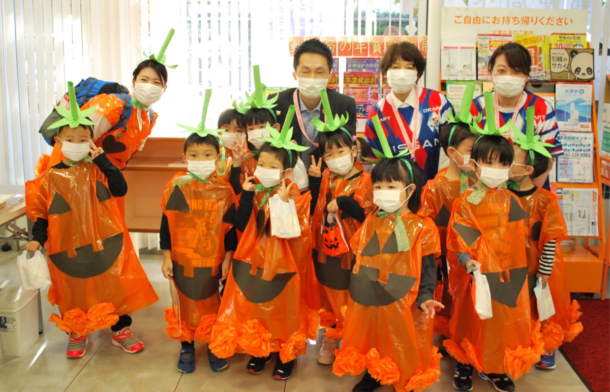 今回、同保育園からの申し出に同郵便局が協力し、初めて実現したハロウィーンイベント。清水園長は「青葉台エリアは園児たちがよく散歩するエリアで町の人が手を振ってくれる。今回、郵便局に喜んで協力してもらい、園児たちもとても喜んでました」と感謝を語った。小泉局長は「コロナ禍でイベントがなかなか行えない中、地域からこのような声がかかるのは、本当にありがたいこと。園児から笑顔を貰いました」と喜び、「地域の人に気軽に来てもらえる親しみやすい郵便局にしていきたい」と話した。