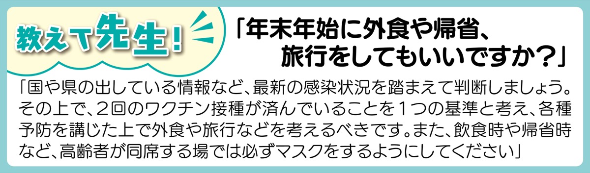 「基本的には3密(密集・密接・密閉)を避けること。手洗い(消毒)、うがいをしっかり行うこと。免疫力を高める健康的な生活を送ることが大事ですが、現時点ではワクチン接種が一番の予防法になります」