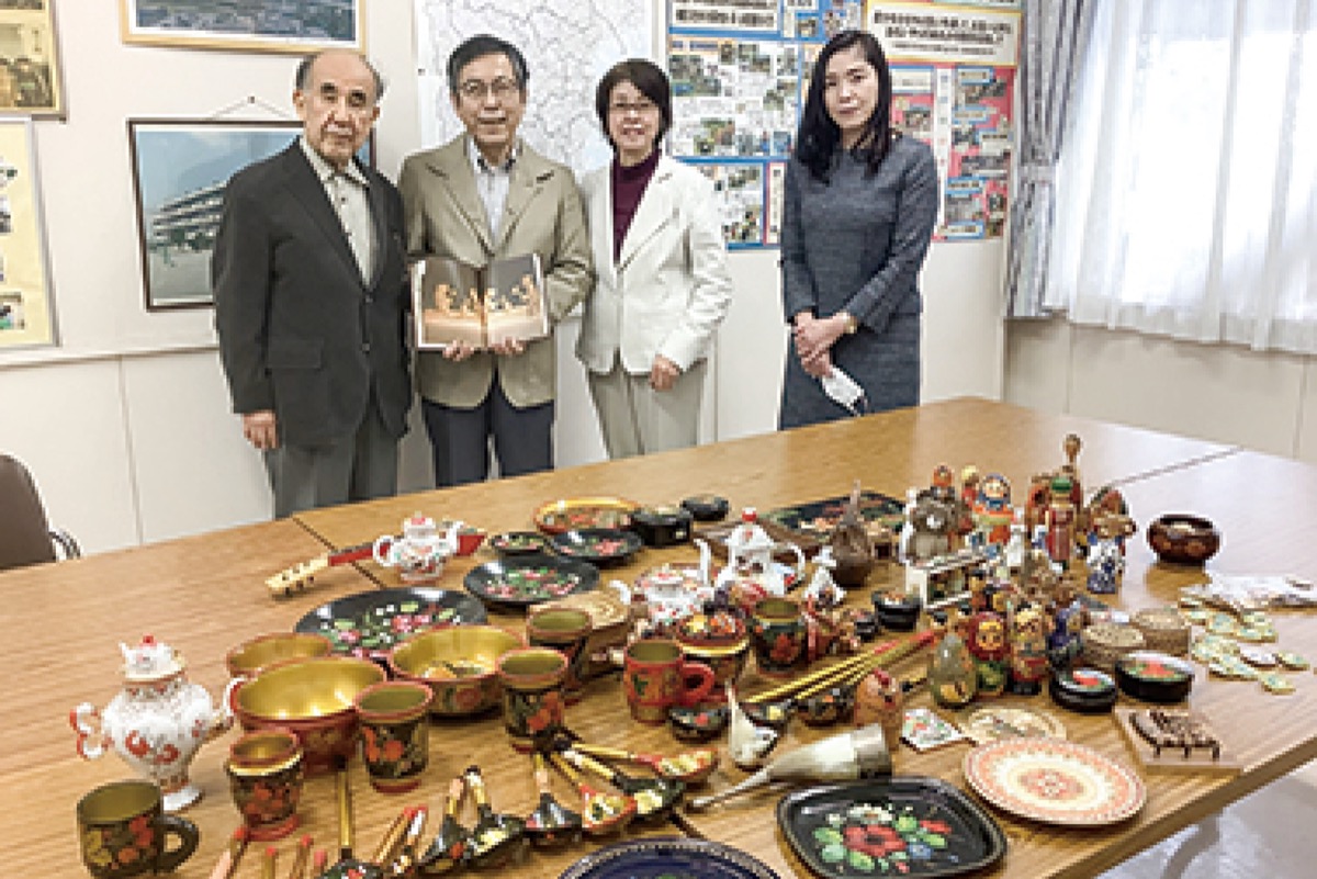 鴨志田町在住の黒川繁昭さんが11月1日、市立東市ケ尾小学校(後明好美校長)で国際交流教室を行うステップ国際理解(柏村茂代表)にロシア民芸品を寄贈した。寄贈品は、マトリョーシカや民族楽器、食器など130点以上にも上った。柏村代表は寄贈を受け「授業を通して、子どもたち一人ひとりが、手で触ることができる。現地の貴重な品物を提供してくれて嬉しく思う」と感謝を述べた。