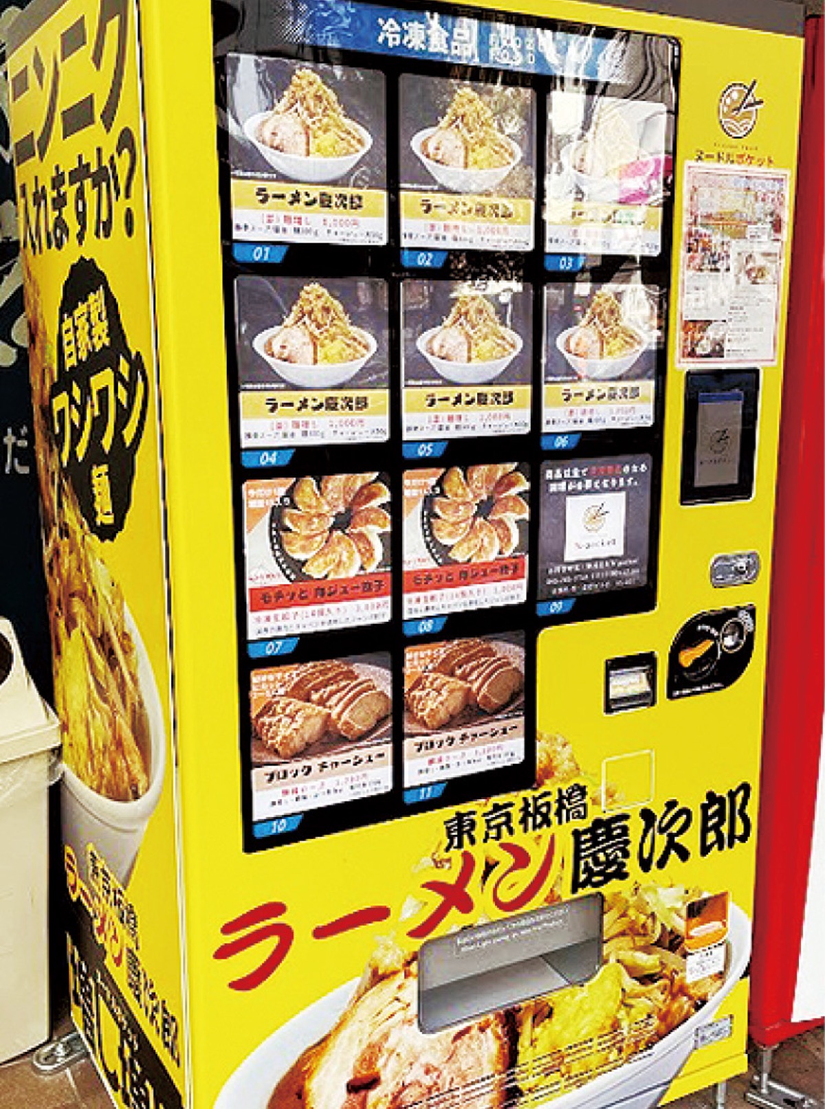 行列ができる豚骨ラーメンの味を自宅で楽しめると話題の冷凍ラーメン自販機が、森野屋酒店前/榎が丘1の6に登場。すでに注目を集め、まぜそばや餃子、叉焼(チャーシュー)も人気だ。(問)【電話】050・5526・6023