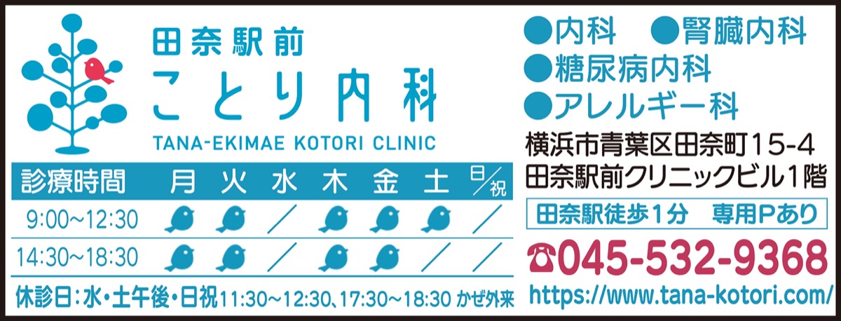 「地域の頼れるホームドクター」をモットーに総合内科や腎臓、透析の専門医である小島院長が一般内科はもちろん、腎臓病や糖尿病、高血圧などの生活習慣病まで幅広く診療してくれる「田奈駅前ことり内科」。