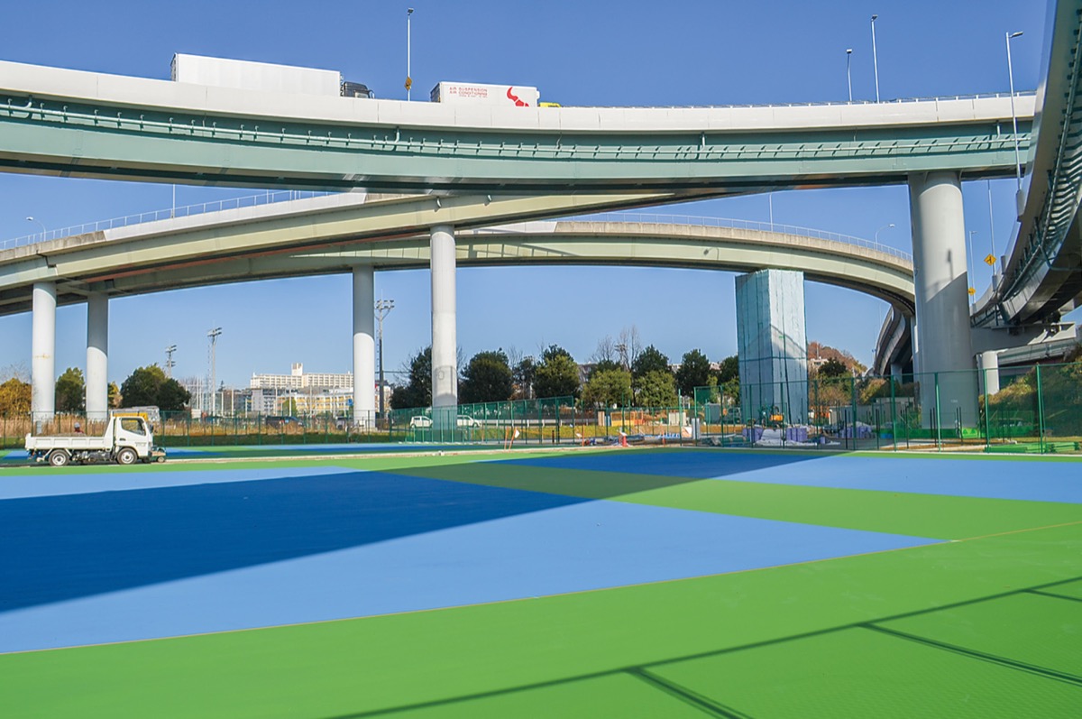 横浜北西線の高架下を活用した「青葉区身近なスポーツの場」の整備が、4月の開所に向けて進んでいる。