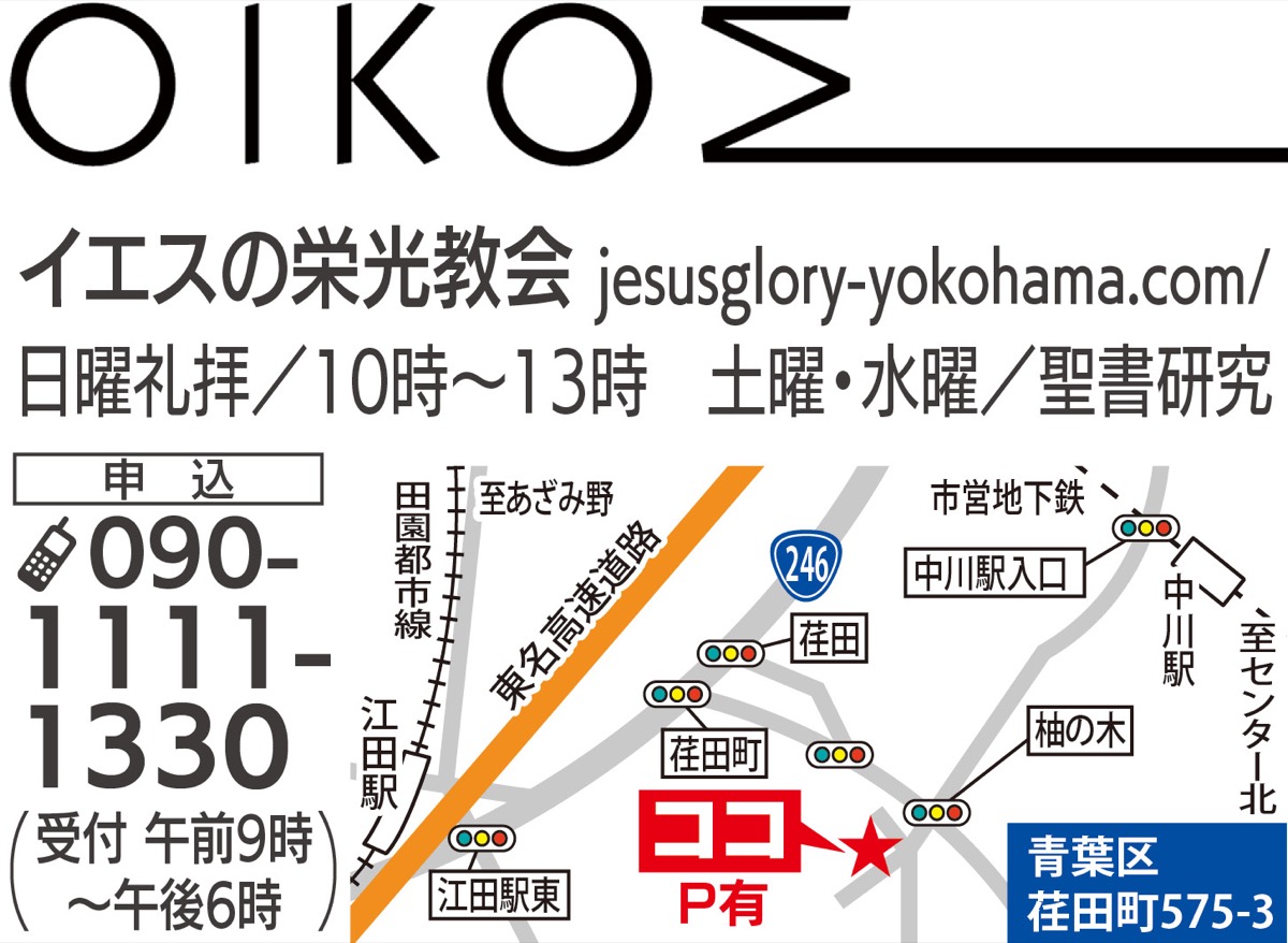 青葉区荏田町のプロテスタント教会「イエスの栄光教会」=左写真=は2月19日(土)、2周年記念礼拝を開催する。