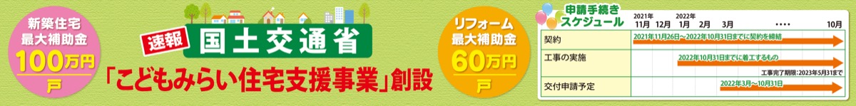 知ってますか新制度「こどもみらい住宅支援事業」 補助金額最大100万円 注文住宅新仕様も対象に