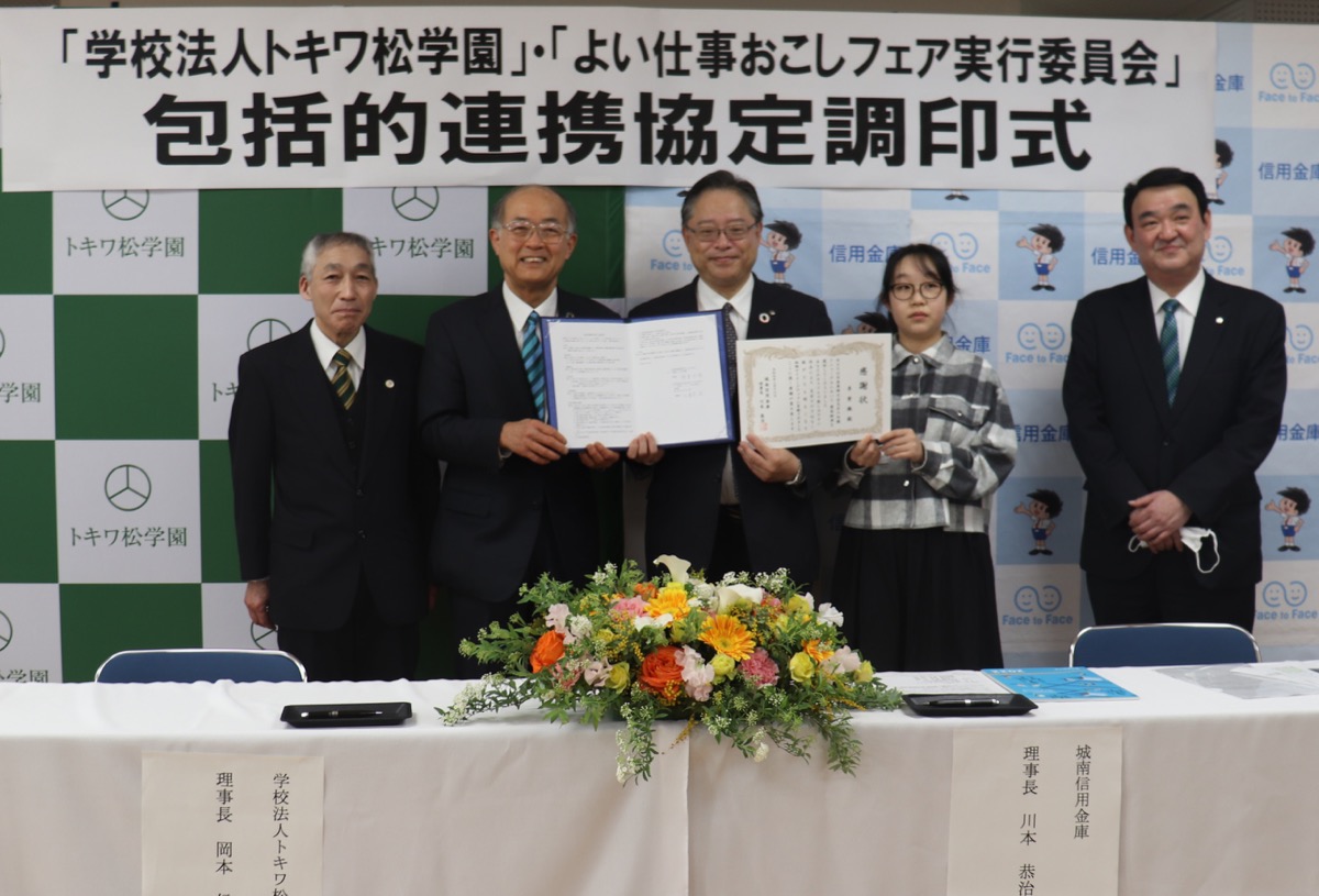 青葉区にある横浜美術大学などを設置する学校法人「トキワ松学園」=東京都目黒区=が全国の信用金庫などでつくる「よい仕事おこしフェア実行委員会」と3月16日、地域の発展、安心・安全に暮らせる地域づくりを目指した包括的連携協定を結んだ。