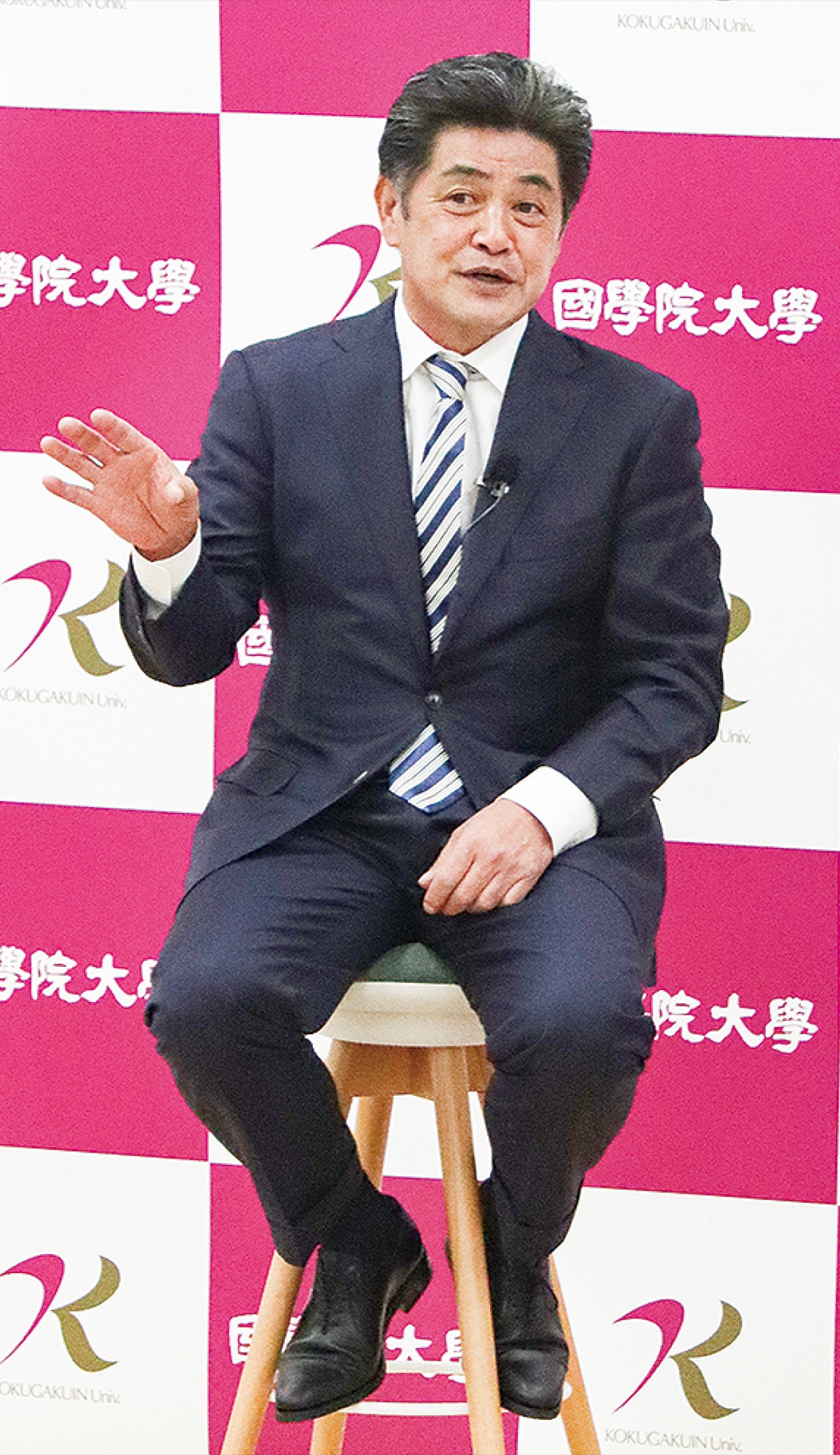 国学院大学たまプラーザキャンパスで4月16日、福岡ソフトバンクホークス前監督の工藤公康氏を招き、「潜在能力を引き出す力」がテーマの講演会が行われた。オンライン参加も合わせ、学生や一般参加者ら約400人が耳を傾けた。主催は、同大学人間開発学部地域ヘルスプロモーションセンター(富田一誠センター長)。