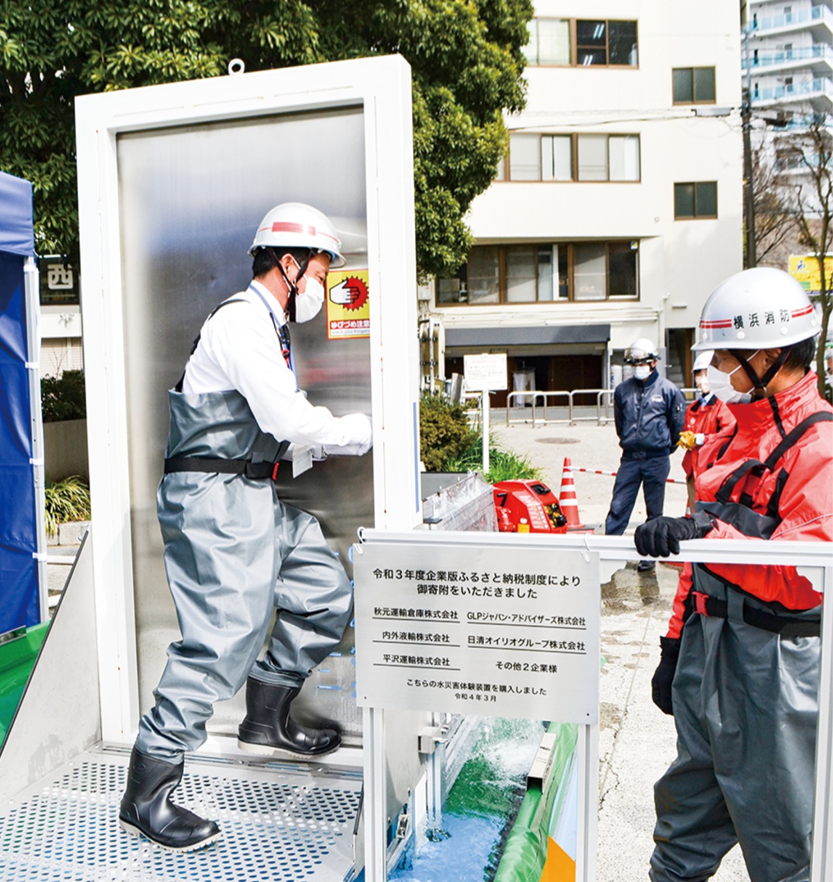 防災・減災教育の場として地震や火災、風水害への備えを学べる横浜市民防災センター(神奈川区沢渡4の7/横浜駅西口徒歩10分)は、水災害に特化した体験装置を4月に導入した。近年激甚化する水害に対し、体験を通じ「逃げ遅れゼロ」を目指したい考えだ。