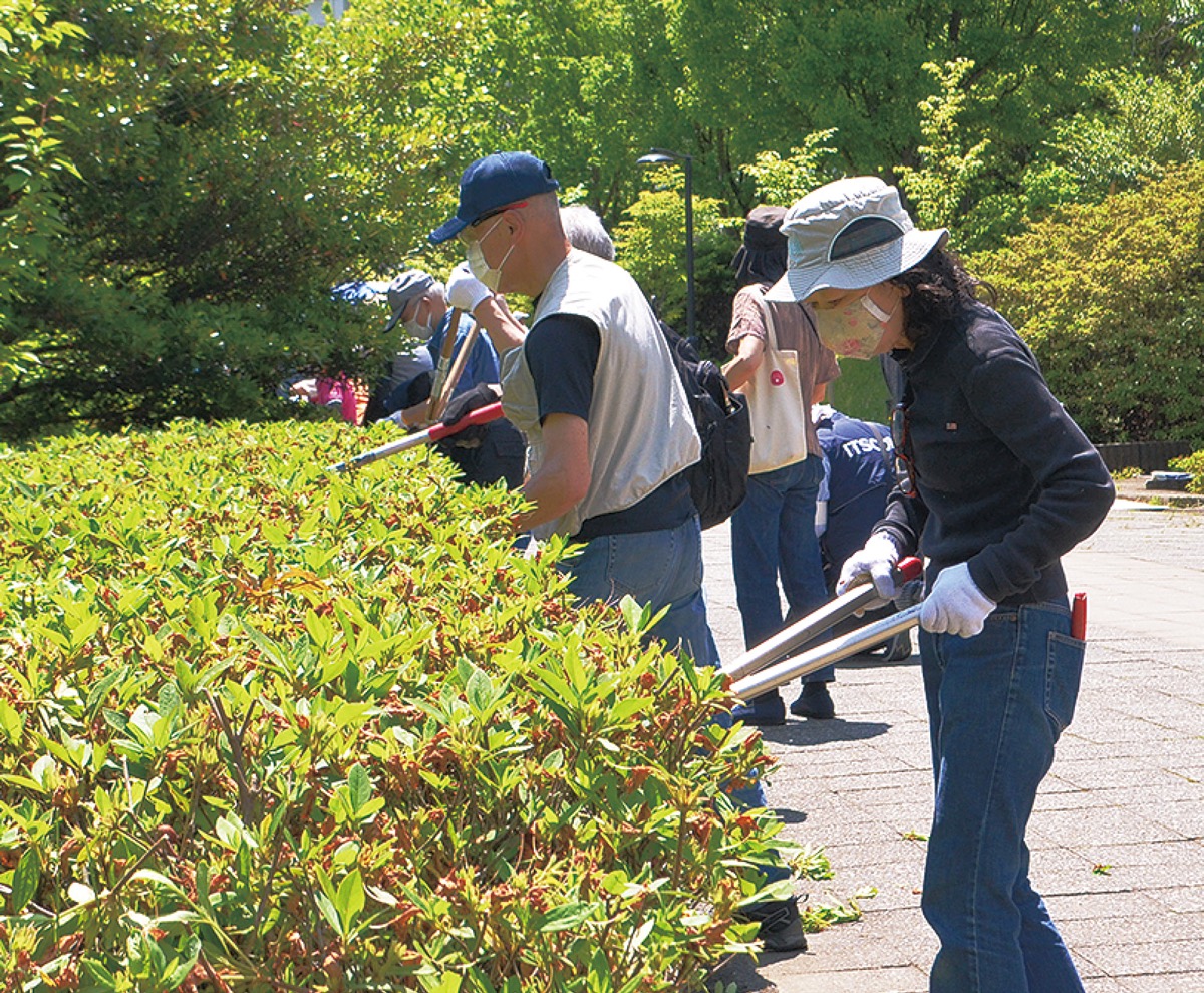 たまプラーザ団地で5月28日、剪定作業を通じて住民交流を図る活動が3年ぶりに行われた。