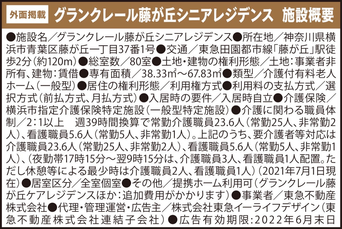 藤が丘駅徒歩2分の「グランクレール藤が丘シニアレジデンス」は、東急不動産HDグループが運営する自立したシニア向けの住まい。そんな同住宅で「高齢者住宅の種類と選び方セミナー」が6月29日(水)に行われる。参加無料。