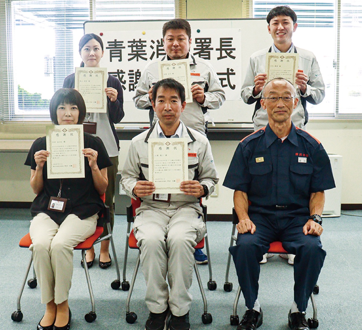 中日本高速オートサービス(株)東京支店(下谷本町)の社員5人が人命救助をしたとして、7月21日に青葉消防署から感謝状が贈呈された。