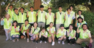 当日は青少年の地域活動拠点「あおばコミュニティ・テラス」を通じて中高生のボランティアが7人、サポート役の青山学院大学の大学生2人が参加。また、県社会人サッカーリーグ1部に所属し、谷本公園を拠点に練習しているサッカークラブ「イトゥアーノFC横浜」の選手ら4人も加わった。参加者は草取りをし、花壇をきれいにした上で12ケース分の花苗を植えた。