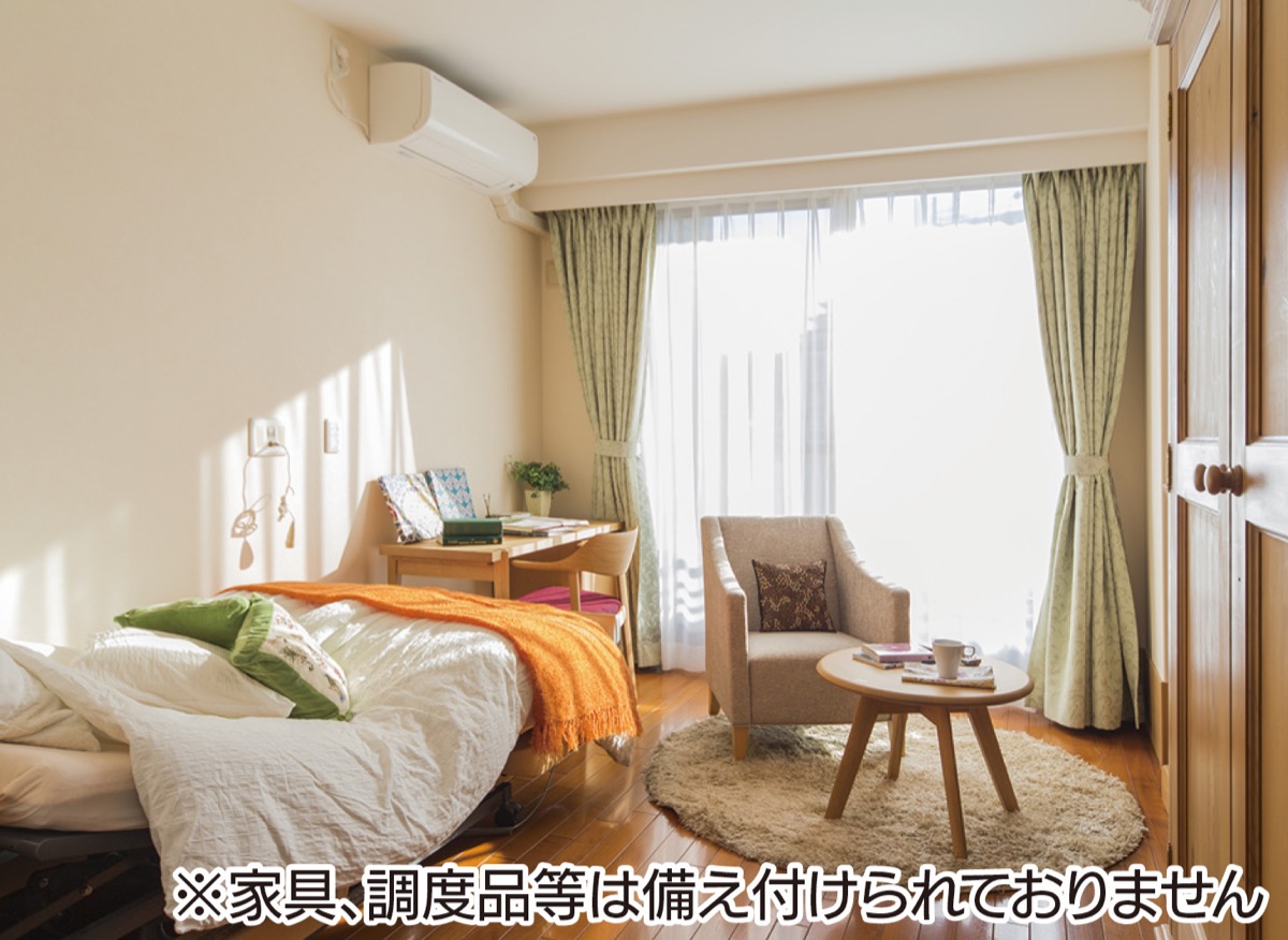 手厚く、きめ細やかな「個別ケア」が魅力の同住宅。介護に関わる人員は、入居者1・5人に対して1人の配置で、国が定める基準の2倍。看護師は24時間常駐で、クリニックも併設する。数人から10人程度のユニットケアも特徴で、顔なじみのスタッフが変わらずに介護を担当する信頼感も。家族との面会も可(諸制限あり)など、入居者本位の環境を整えている。