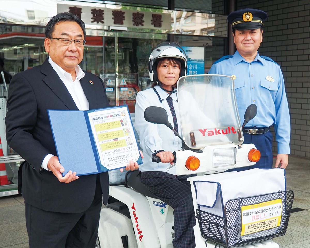 特殊詐欺による被害を食い止めようと、青葉警察署は9月9日、神奈川東部ヤクルト販売株式会社に対し特殊詐欺防止啓蒙活動委任式を行った。