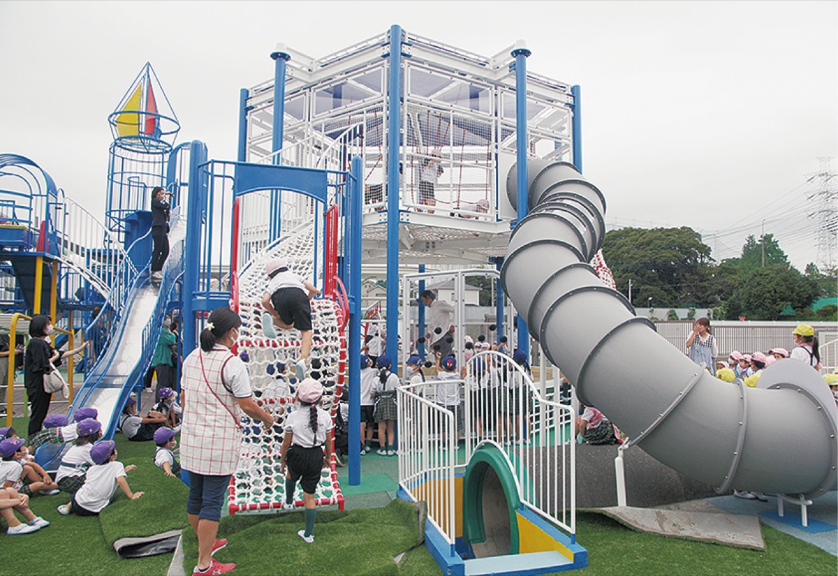 あざみ野白ゆり幼稚園(白井三根子園長)に10月5日、(株)ジャクエツが開発した総合遊具「ケプラータワー」が県内で初めて納入された。