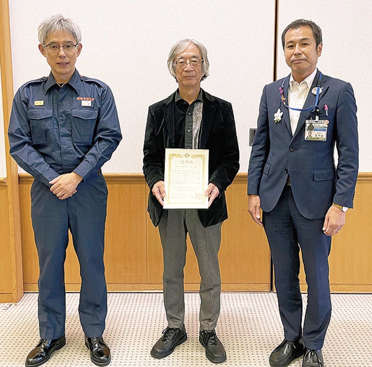 10月20日、青葉区役所で行われた表彰式では、天下谷秀文区長と黒岩大輔消防署長が出席。日頃から出火防止活動への積極的な取り組みに感謝を示し、天下谷区長から岩谷会長に感謝状が手渡された。