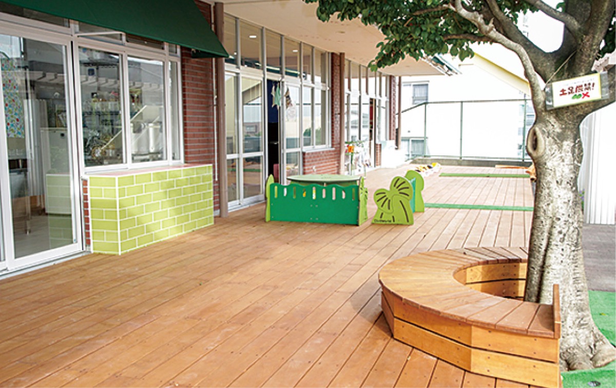 昨年度からは自園調理給食もスタート。すべて手作りで野菜を中心としたメニュー、化学調味料不使用で、旬の国産素材を使った高品質な給食に園児たちもニコニコ笑顔。食育を大事にしながら、みんな同じ給食を食べることで、苦手な食材も少しずつ克服できているそうだ。