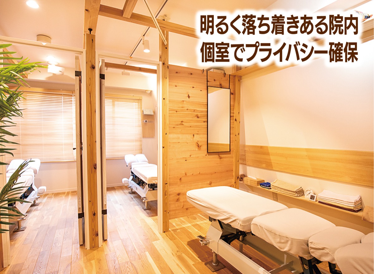 施術は落ち着いた個室で、感染対策も万全。家族経営のアットホームな雰囲気も人気の秘密だ。「今年も一人でも多くの患者様の笑顔を見られるよう施術していきます!」とタツ若先生。