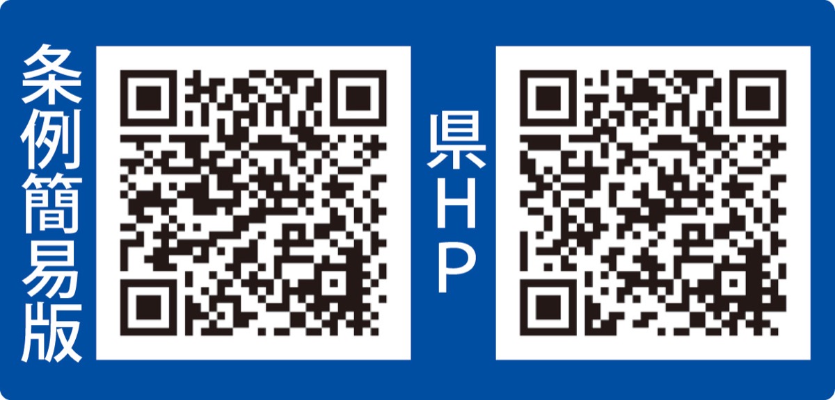 県のHPで概要を見られるほか、条例を分かりやすく紹介した簡易版も作成。内容は左の二次元コードから確認できる。