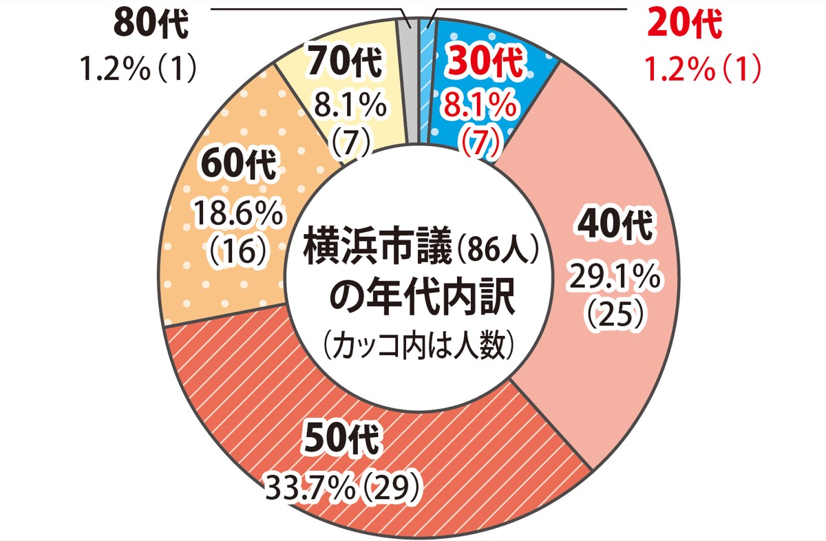 4月の横浜市議選の当選者の任期が4月30日に始まった。改選後、市議86人のうち20、30代は全体の1割以下の8人で、政令市の平均を下回った。市が子育て施策に重点を置く中、同世代の議員は「当事者世代の声を届けるためにも若い議員は必要」と訴える。