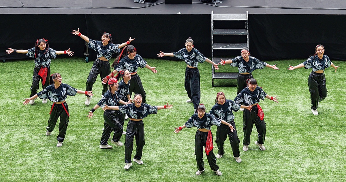 ダンスの振付を東京2020オリンピック・パラリンピック競技大会の開閉会式総合振付を担当したダンサー・振付家の平原慎太郎さんに直接指導を受けた同部。週3日ほど練習日にあて、本番に臨んだという。当日は自分たちで髪の装飾を赤色に統一して出演するなど目立つ工夫もしたという。
