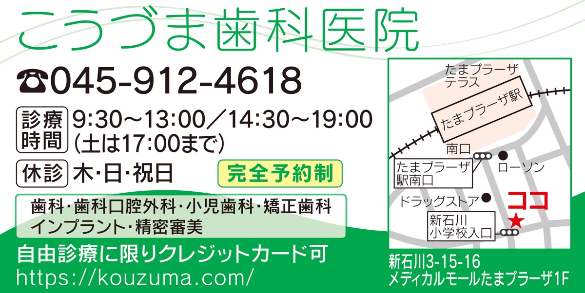たまプラーザ駅南口徒歩2分、白を基調としたサロンのような心地よさと全室個室の診察室、バリアフリーで衛生的な院内が印象的な「こうづま歯科医院」。