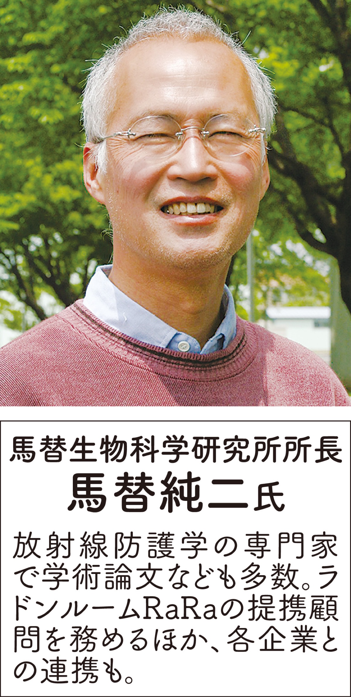 安全面は、専門家と提携を行い、第1種放射線取扱主任者の馬替純二所長が管理している。馬替所長は「人は日々自然界から放射線を浴びながら生活している。健康な方はもちろん、がんや皮膚疾患、関節痛に悩まされている方など若い人からお年寄りまで利用できる」と話す。利用するには電話申込が必要。