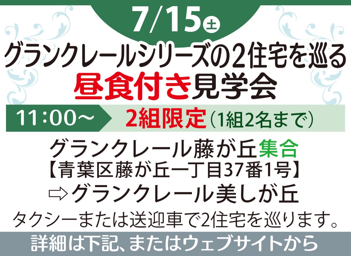 セミナーは4組限定(1組2名まで/応募多数時抽選)。午後2時開始で、参加者は10分前に同住宅集合。希望者は無料送迎あり(青葉区内のみ)。申込は下記まで。
