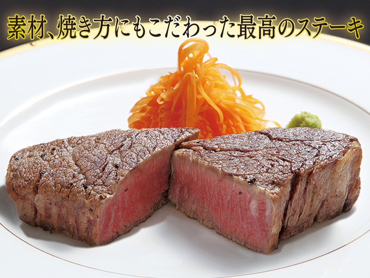 使用される佐賀牛は指定農家で長期肥育されたA5ランクのみ。その最高級のお肉を、旨味を閉じ込めながら柔らかく焼き上げる。じっくりと火を通されたステーキは、まさに絶品。芳醇な肉の旨味を堪能できる。